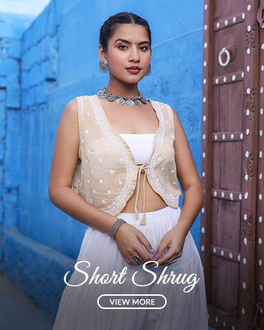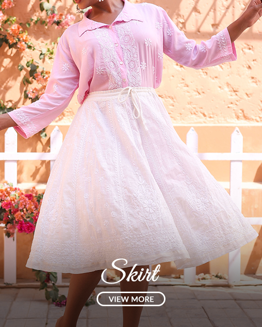 Chikankari Front Open Khadi Co-ord Set Long Straight Bail