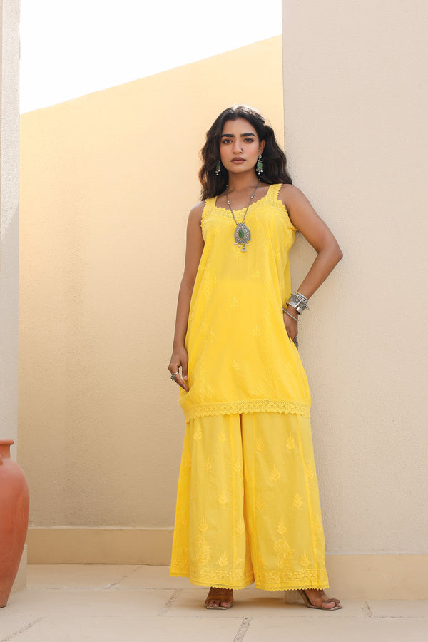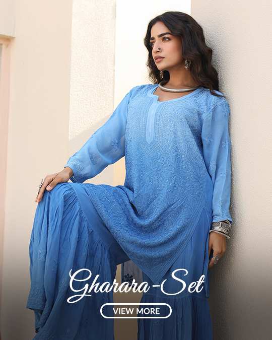 Chikankari Short Kurti Gharara Set with Mukaish Work & Inner(Black)