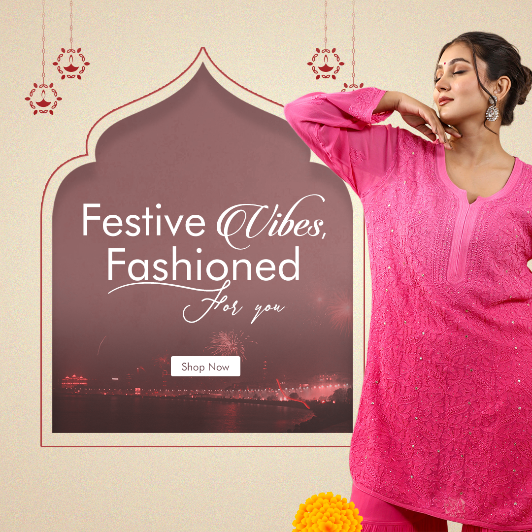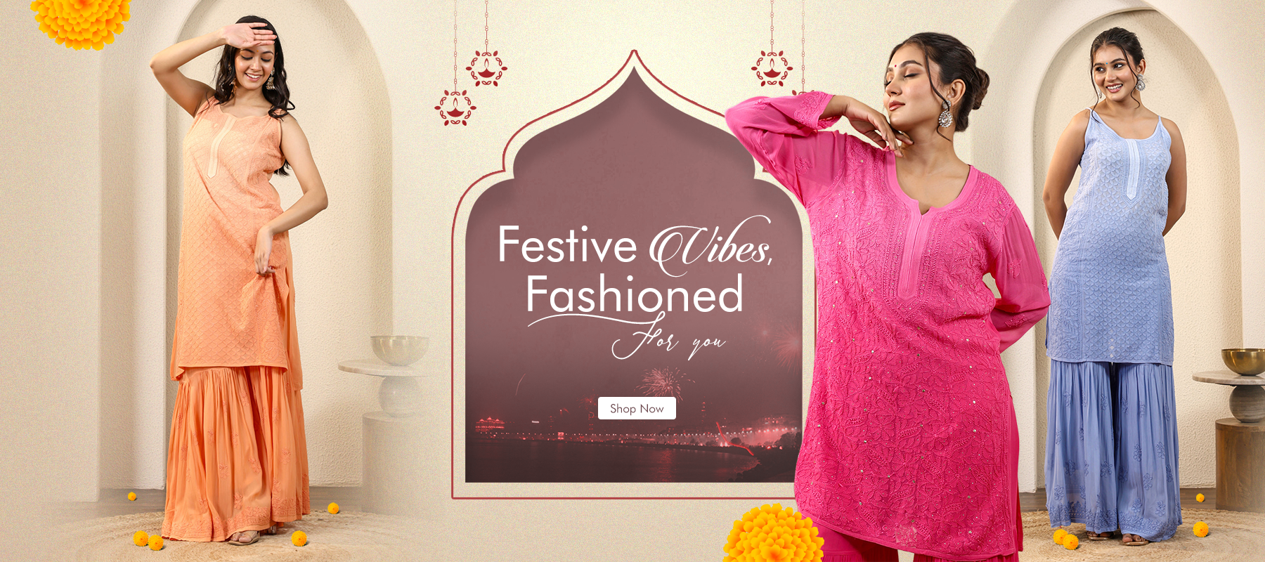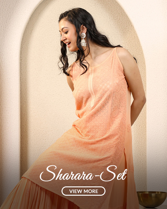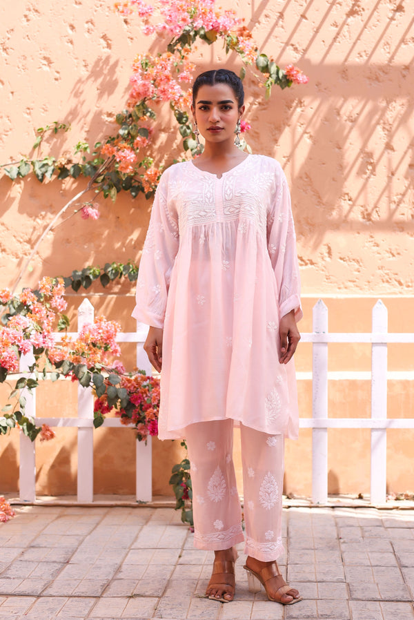 Chikankari Short Kurti Gharara Set with Mukaish Work & Inner (Pink)