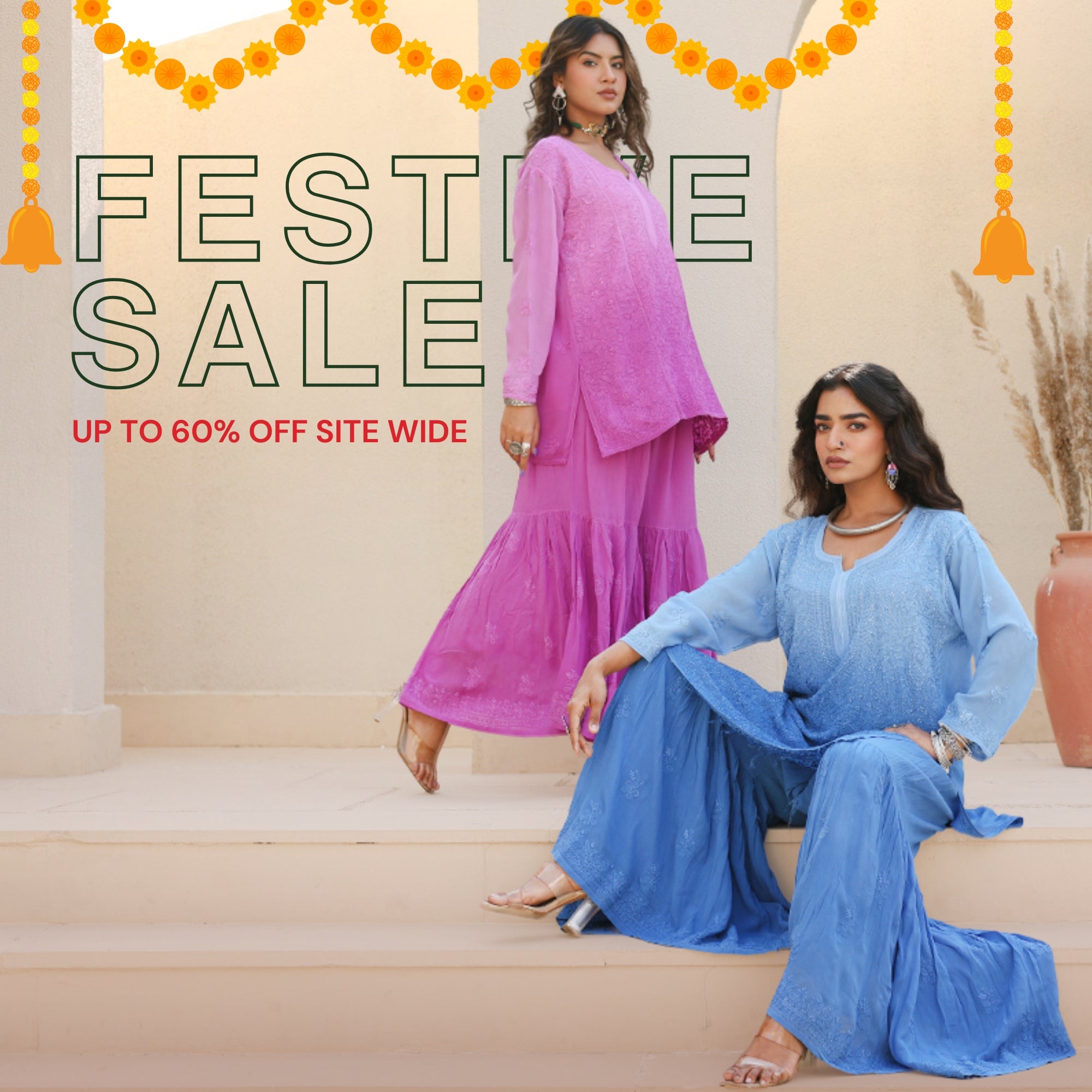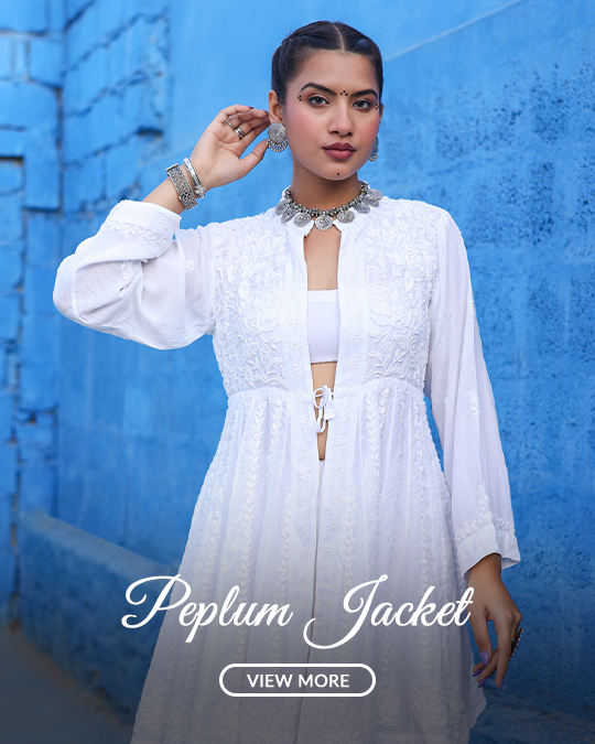 Chikankari Front Open Khadi Co-ord Set Long Straight Bail