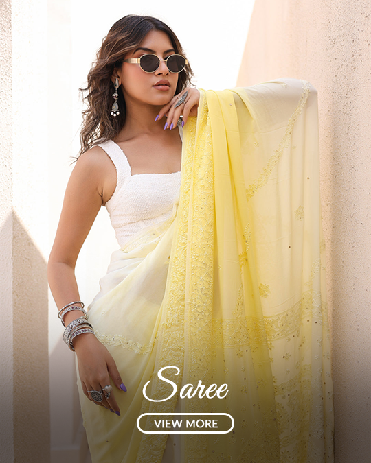 Chikankari Viscose Premium Mukaish work Ombre Yellow Saree